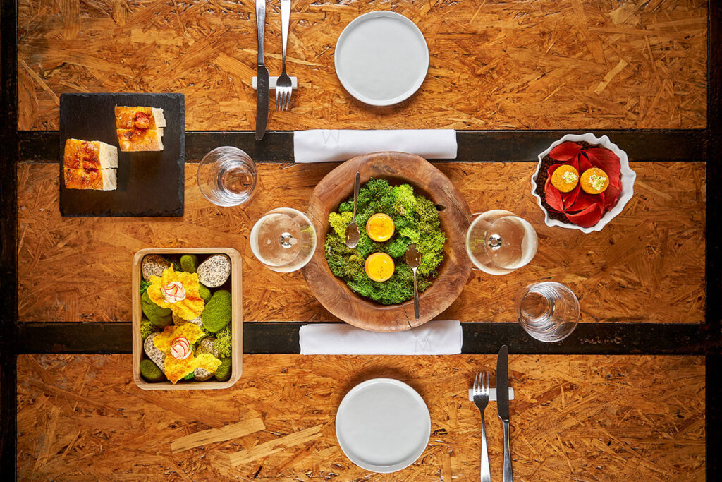 Traditionelle Rezepte werden neu interpretiert. Die Gerichte leben von wenigen ausgesuchten Komponenten. Der Einfluss von Stefanos Nonna ist genauso spürbar wie der seiner Reisen in Europa und Japan.